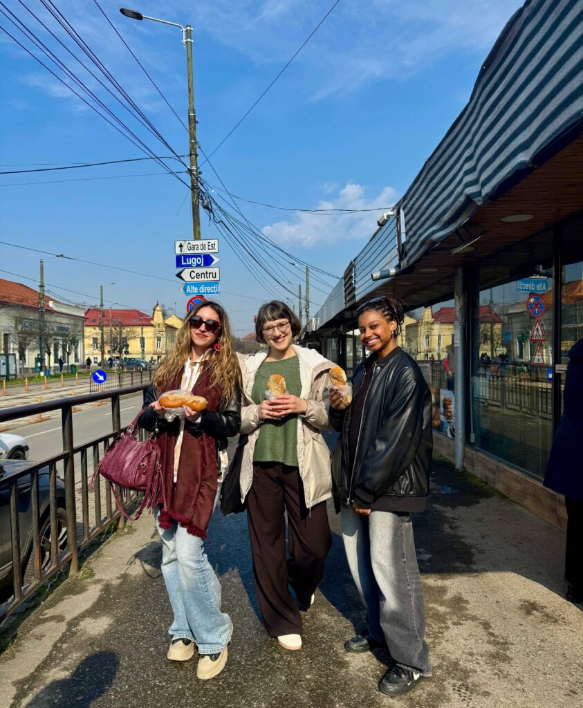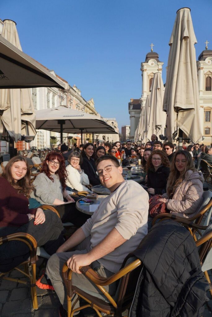 Experiența academică a fost completată de momente aplicate și exploratorii. Excursia la Jimbolia, ghidată cu o pasiune extraordinară de domnul Sergiu Dema, directorul Casei de Cultură din acest oraş, a fost de neuitat, pentru că ne-a permis să descoperim patrimoniul local și să înțelegem concret diversitatea culturală a regiunii. Vizita la Biblioteca Centrală Universitară „Eugen Todoran”, unde doamna Mălina Duţă ne-a prezentat patrimoniul inestimabil al Memoriei Banatului, precum şi turul ghidat la Memorialul Revoluției din Timişoara au contribuit la o mai bună înțelegere a contextului istoric și cultural al oraşului în care ne facem studiile.