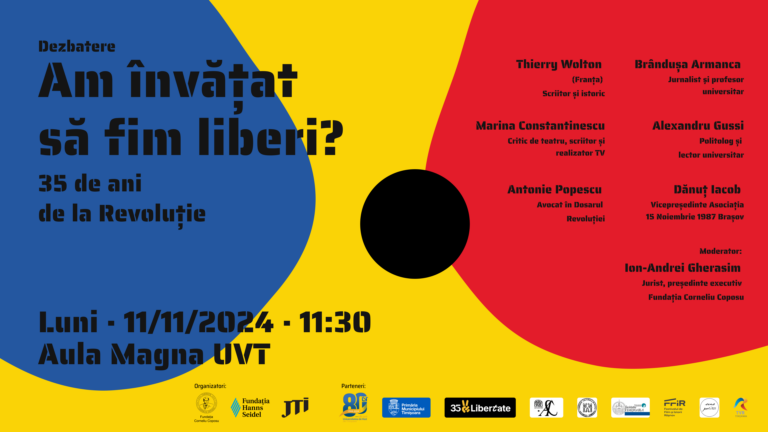 Renumitul scriitor și istoric francez Thierry Wolton a fost invitatul special al dezbaterii „Am învățat să fim liberi? 35 de ani de la Revoluție”, alături de câteva personalități ale culturii românești (Marina Constantinescu, Brândușa Armanca, Alexandru Gussi, Antonie Popescu, Dănuț Iacob).