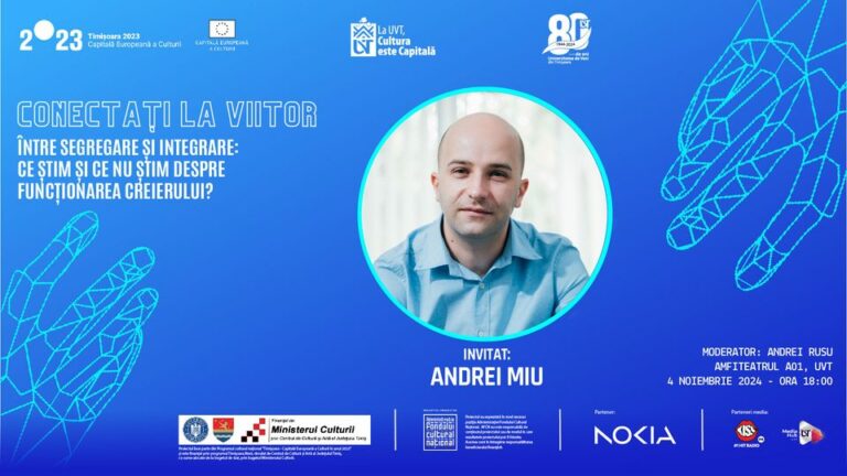 Pe 4 noiembrie 2024, Universitatea de Vest din Timișoara a avut deosebita plăcere de a-l avea ca invitat pe profesorul Andrei Miu, specialist în Neuroștiințe Cognitive și Genetică Comportamentală la Universitatea Babeș-Bolyai din Cluj-Napoca, pentru o discuție captivantă despre complexitatea funcționării creierului.