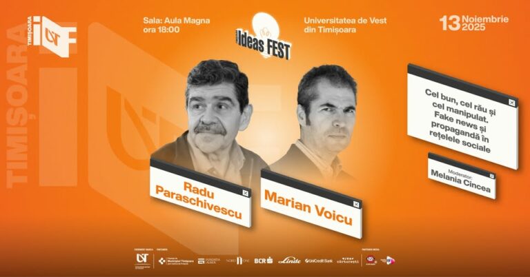 Evenimentul face parte din Timișoara Ideas Fest, festivalul care aduce împreună jurnaliști, creatori de conținut, cercetători, profesori și tineri pentru a explora mecanismele manipulării, impactul propagandei și felul în care social media modelează percepția realității.