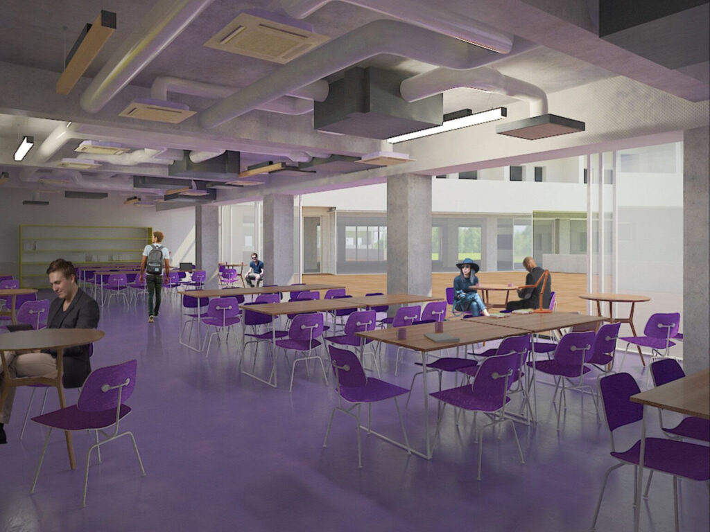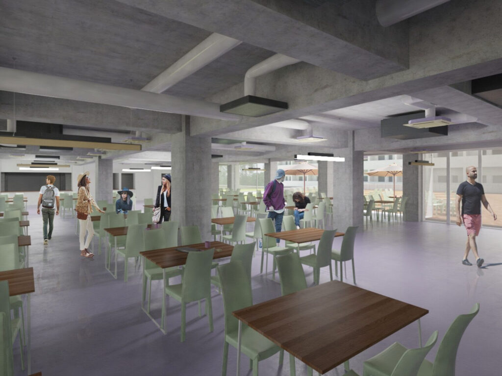 *Imagini cu schițele randărilor spațiilor exterioare și interioare ale viitorului cămin studențesc.