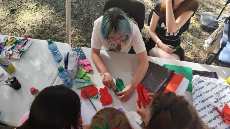 Participanții au avut ocazia de a observa tehnica și de a împături la rândul lor diverse modele de origami, precum iepure, pisică și tradiționalul cocor. Pe lângă aceasta, au fost invitați și să își îmbunătățească caligrafia prin scrierea de proverbe japoneze în kanji – pentru cei curajoși – sau scrierea propriului nume în katakana pentru începători.