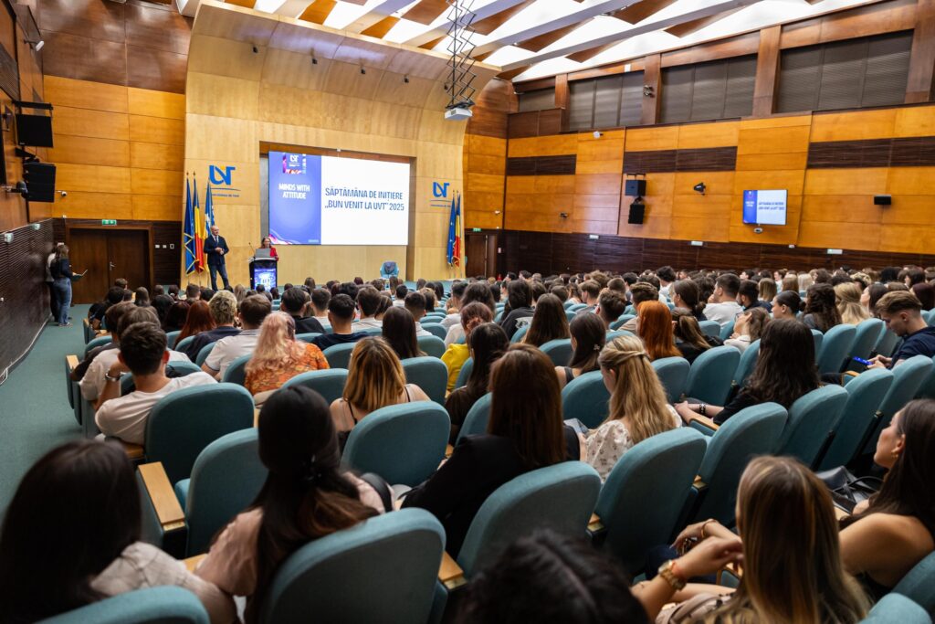 La UVT, celor mai noi studenți le-a fost dedicată Săptămâna de inițiere „Bun venit la UVT”, cu un program care s-a desfășurat în perioada 22 – 28 septembrie 2025. Pe parcursul acestei săptămâni, studenții înmatriculați în anul întâi la programele de studii universitare de licență au descoperit ce înseamnă concret viața de student, cum funcționează mediul universitar și ce oportunități au din această postură. Programul extins al Săptămânii de inițiere la UVT a cuprins evenimente introductive și de acomodare, sesiuni de informare, sesiuni de consiliere și orientare în mediul universitar, tururi ale municipiului Timișoara și vizite la instituțiile culturale din oraș, activități de teambuilding, evenimente culturale, conferințe, dezbateri, expoziții, spectacole de teatru, proiecții de film, concerte etc.