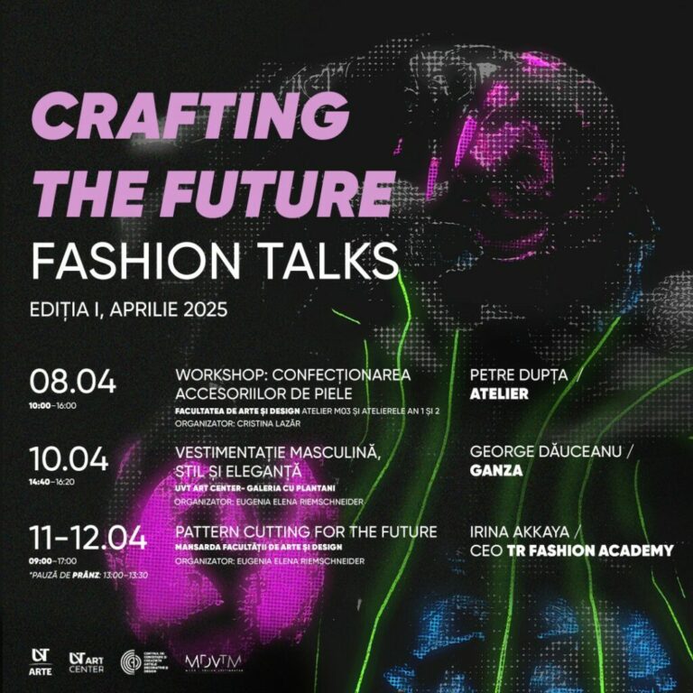 Facultatea de Arte și Design din cadrul Universității de Vest din Timișoara (UVT), în colaborare cu UVT Art Center și partenerii săi, au organizat prima ediție a evenimentului „Crafting the future: Fashion Talks”. Programul s-a defășurat între 8 și 12 aprilie 2025, în spațiul UVT Art Center (Oituz 4a), fiind dedicat educației și inovării în domeniul modei, adresând teme esențiale ale industriei modei, promovând schimbul de experiență între studenți și profesioniști de renume din acest domeniu.