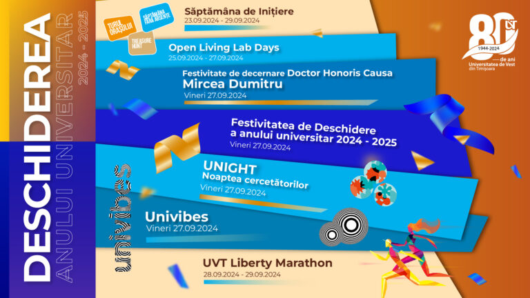 La Universitatea de Vest din Timișoara, debutul activităților academice a fost și în acest an unul efervescent, plin de energie, cu festivități și inițiative menite să sublinieze nu doar începutul unui nou an universitar dinamic, ci și momentul special al „UVT80” pe care îl sărbătorim împreună, în comunitate.