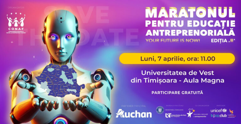 Universitatea de Vest din Timișoara a găzduit „Maratonul pentru Educație Antreprenorială” – o competiție a curajului, inventivității și creativității devenită un reper anual al culturii antreprenoriale de tineret, organizată de Confederația Națională pentru Antreprenoriat Feminin (CONAF) în parteneriat cu UVT.