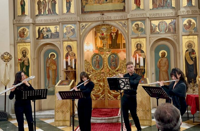 Cvartetul de flaut al Facultății de Muzică și Teatru din cadrul Universității de Vest din Timișoara onorează invitația primită din partea Ambasadei României pe lângă Sfântul Scaun și Ordinul Suveran de Malta, susținând o nouă ediție a concertului special susținut la Roma, dedicat Zilei Naționale a României, care s-a desfășurat miercuri, 18 decembrie 2024, la Colegiul Pontifical Pio Romeno din Roma.