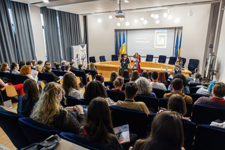 La finalul acestei săptămâni pline, ambii invitați s-au adresat întregii comunități, contribuind la un eveniment cu tradiție și impact al Facultății de Litere, Istorie și Teologie: Simpozionul Studenților Angliști, organizat anual de Colectivul de Limba și Literatura Engleză. Ediția extinsă din acest an a reunit aproximativ 125 de participanți locali, naționali și internaționali și un număr considerabil de auditori. Prelegerile deschise tuturor celor interesați au captivat prin ingeniozitate, diversitate a subiectelor abordate și metodelor de cercetare propuse, generozitate a reflecției și teme de actualitate. Pe 12 aprilie, Prof. SOLLORS a deschis lucrările Simpozionului cu o conferință plenară despre Edward Steichen’s The Family of Man. Looking at the Photographs and Remembering a Visit to the Exhibition.
