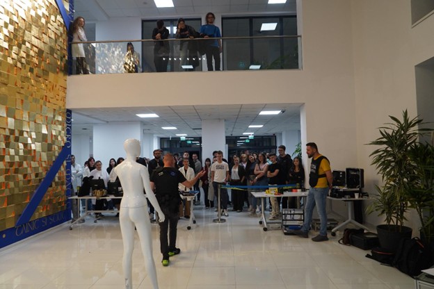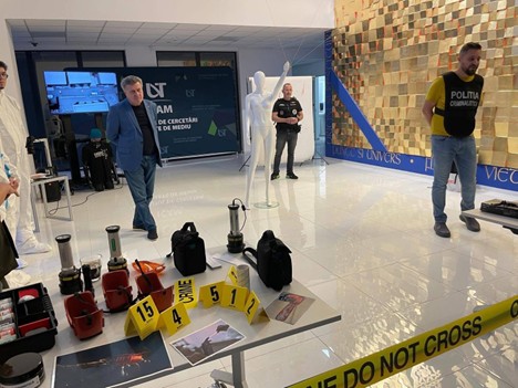 Reprezentanți ai Serviciului Criminalistic din cadrul IPJ Timiș și INSEMEX Petroșani au oferit demonstrații cu echipamente de specialitate și au explicat modul în care metodele științifice și aparatura utilizată permit investigarea detaliată a evenimentelor.