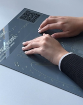 Este un fel de sistem hibrid, unde atingerea este augmentată digital. Fiecare planșă tactilă conține un cod QR care, prin scanare, oferă acces la un conținut explicativ accesibilizat audio. Acolo sunt stocate informații despre cum se citește și decodifică tactil fiecare planșă, respectiv despre opera artistică în sine (perioadă, tehnică, încadrarea în curentul artistic din care face parte, autor și povestea vieții lui, compoziție, semnificație, părerile criticilor și chiar scurte citate relevante despre crezul artistic al pictorului).