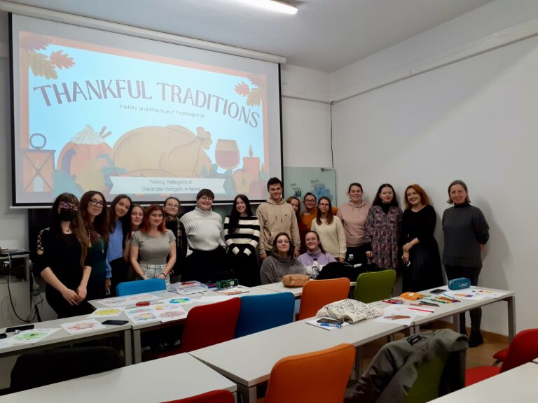 Centrul de Studii Americane al Facultății de Litere, Istorie și Filologie a lansat vineri, 24 noiembrie, ora 18, sala 248, o invitație specială prin intermediul lectorilor Fulbright, Nancy Pellegrino și Oleander Artemis, care au organizat ThankfulTraditions, o lecție interactivă despre istoria și practica sărbătorii americane a recunoștinței (Thanksgiving).