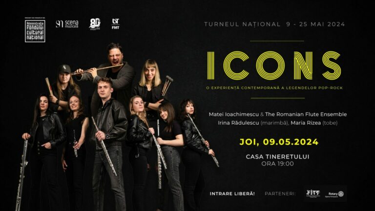 Matei Ioachimescu, unul dintre cei mai virtuozi flautiști ai momentului, conferențiar universitar în cadrul Facultății de Muzică și Teatru a Universității de Vest din Timișoara, pregătește turneul național ICONS, care se va desfășura în perioada 9 – 25 mai 2024. El invită publicul din nouă orașe (Timișoara, Sibiu, Cluj Napoca, Bistrița, Baia Mare, Brașov, Buzău, Ploiești și București) să participe la un spectacol palpitant, ce promite să redefinească experiența unui concert obișnuit.
