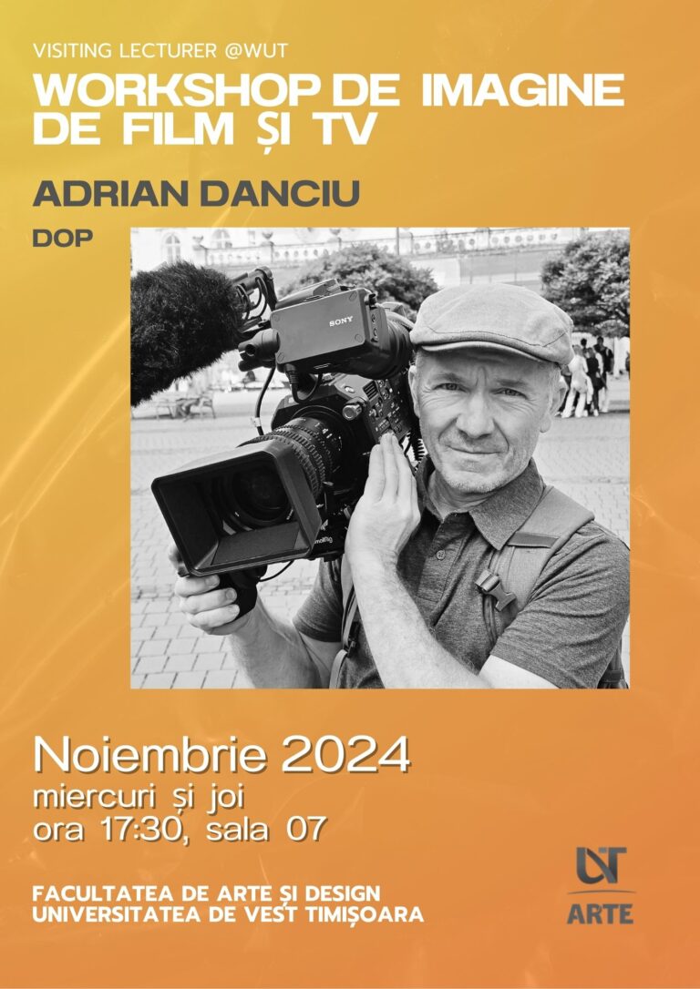 Din anul 2000, Adrian Danciu a activat preponderent peste ocean, în SUA, filmând și uneori montând variate tipuri de producții audiovizuale, pentru diferite televiziuni, case de producție sau proiecte independente. A semnat imaginea multor documentare de călătorie sau de natură, dintre care menționăm renumitul program de televiziune Bizarre Foods with Andrew Zimmern (proiect care l-a purtat prin toată lumea, de la SUA la Europa, Canada, America de Sud, Thailanda, Cambogia, China, India, Siria, Israel, Hong Kong, Jamaica, Guatemala, Maroc, Mexic, Insulele Feroe, Africa de Nord și Centrală), lucrând în echipe mixte de profesioniști, în condiții de filmare provocatoare, de multe ori, ceea ce i-a permis să-și dezvolte o serie de abilități practice de adaptare la condițiile de teren și la contextele internaționale de producție. Din această experiență consistentă, dobândită în timp, prin pasiune și dedicare față de profesia aleasă, Adrian Danciu împărtășește cu generozitate și entuziasm, zilele acestea, studenților de la Facultatea de Arte și Design, secția Fotografie – Videoprocesare computerizată a imaginii, prin exemple concrete și exerciții aplicate, în cadrul sesiunilor de atelierelor. Abordarea este de tipul project-based learning, integrând în exercițiile de filmare și proiectele pe care studenții le dezvoltă în cadrul disciplinelor fundamentale care reprezintă specificul secției mai sus menționate. Temele dezbătute la atelier compun elementele definitorii ale imaginii în mișcare, precum: expunerea corectă, shutter speed-ul, schemele de lumini în diferite locații, setările camerei, obiectivele, dynamic range, captarea sunetului, filmarea cu mai multe camere, dar și importanța muncii în echipă și a colaborării armonioase între diferitele departamente ale producțiilor audiovizuale, sub motto-ul “Nu suntem aici pentru a crea probleme, ci pentru a găsi soluții.”