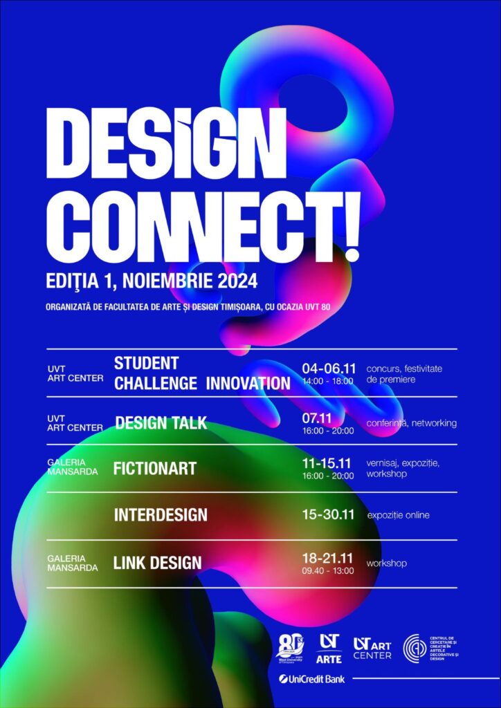 Design CONNECT 2024, un nou eveniment dedicat creativității, inovației și colaborării între mediul academic și cel privat, va debuta pe 4 noiembrie la Timișoara. Organizată de Facultatea de Arte și Design a Universității de Vest din Timișoara sub egida aniversării a 80 de ani de la înființarea UVT, această manifestare își propune să aducă împreună studenți, designeri și profesioniști pentru a împărtăși idei și pentru a pregăti tinerii pentru provocările și cerințele pieței muncii.