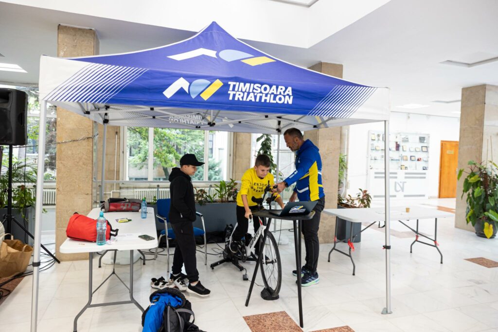 Vizitatori la standul Timișoara Triathlon , în programul festivalului Discover Yourself Fest, la UVT