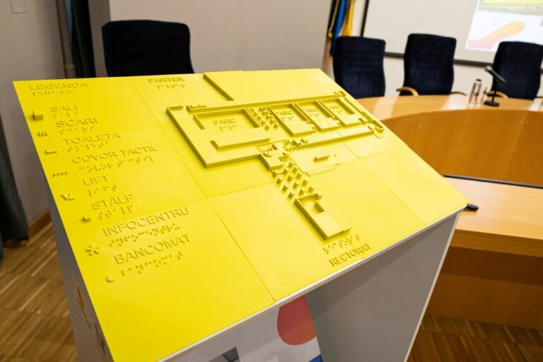 UVT a lansat astăzi proiectul „MapSense – Navigating the World by Touch”, un proiect unic în România, care accesibilizează sub forma unor machete tactile toate spațiile principale ale sediului universității.