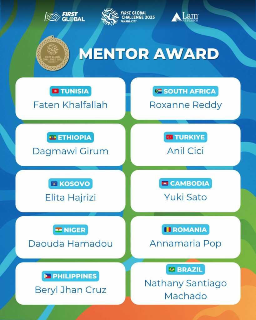 În cadrul aceleiași ceremonii, doamna profesor Annamaria Andreea Pop, mentor al echipei, a primit Outstanding Mentor Award, o distincție acordată anual unui număr de doar 10 mentori din 194 de țări. Premiul recunoaște angajamentul excepțional în ghidarea, susținerea și formarea tinerilor pasionați de știință și tehnologie.