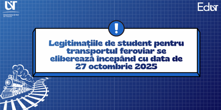 Studenții înmatriculați în anul universitar 2025-2026 în anul I al ciclului de studii universitare de licență, respectiv de masterat, la forma de învățământ cu frecvență, în vârstă de până la 30 de ani, pot ridica legitimațiile de student pentru transportul feroviar începând de luni, 27 octombrie 2025, de la InfoCentrul studențesc al facultății la care sunt înmatriculați.