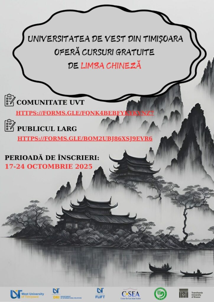 Universitatea de Vest din Timișoara (UVT), prin Direcția de Relații Internaționale în colaborare cu Institutul Confucius și cu Facultatea de Litere, Istorie, Filosofie și Teologie, are plăcerea de a organiza și în anul academic 2025-2026 cursuri de limba și cultura chineză, ca parte din strategia de internaționalizare a universității și de promovare a diversității culturale. […]