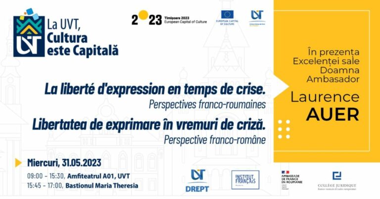 Printr-o abordare franco-română, conferința „Libertatea de exprimare în vremuri de criză. Perspective franco-române”, susținută de E.S. dna. Laurence Auer, Ambasador al Republicii Franceze în România, și-a propus să abordeze libertatea de exprimare atât din perspectivă juridică, cât și din perspectivă practică, atunci când societatea se confruntă cu un context de criză.