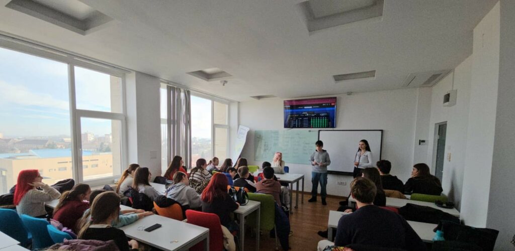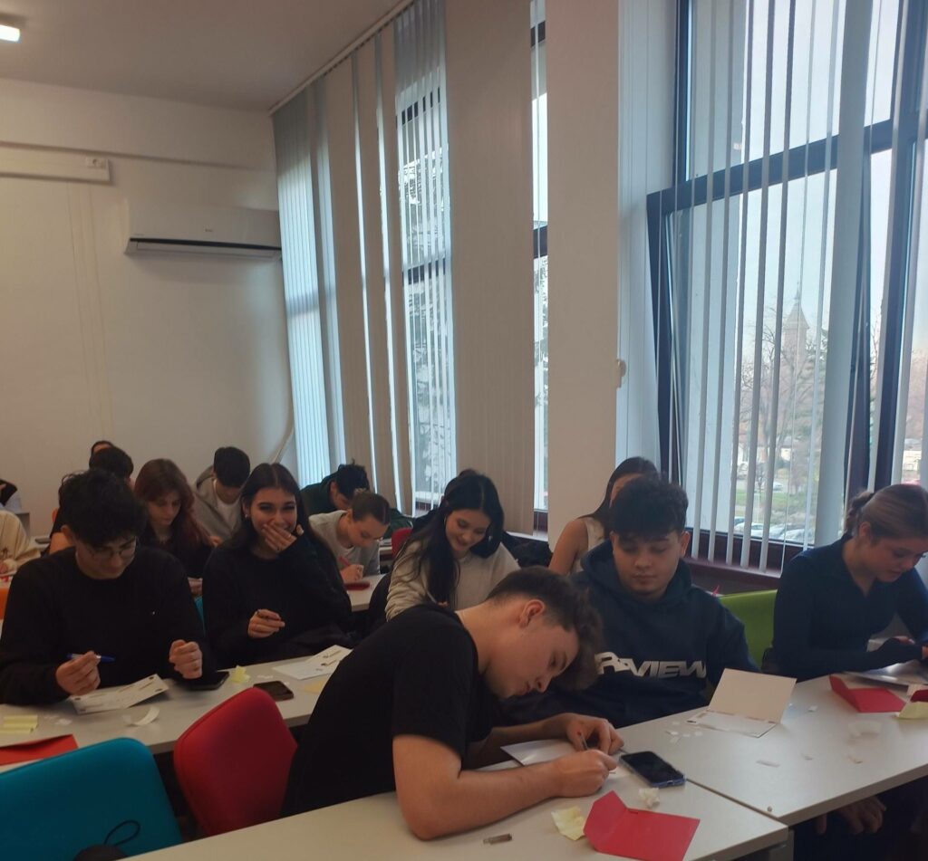 În zilele de 10 decembrie și 16 decembrie, la Facultatea de Litere, Istorie, Filosofie și Teologie, la programul de studiu de limbă rusă, au avut loc două ateliere, coordonate de doamna lector univ. dr. Anca Ciocoiu, cu prilejul sărbătorilor de iarnă. La primul atelier au participat elevii din clasa a XII-a de la Colegiul Național Bănățean din Timișoara, însoțiti de doamna profesoară Adelina Dudaș, iar la al doilea atelier ne-am bucurat de vizita altor oaspeți dragi, de această dată elevi din clasele a VI-a și a X-a de la Liceul Teoretic „Jozef Gregor Tajovsky” din Nădlac, însoțiți de doamna profesoară Milena Paladie. Prin imaginile, muzica, desenele animate și jocurile interactive propuse de studenții noștri din anul al II-lea și al III-lea, elevii au descoperit farmecul și magia sărbătorilor rusești. Scrierea felicitărilor în limba rusă a fost unul dintre cele mai plăcute momente. Le mulțumim participanților, dorind ca Sfintele Sărbători de Crăciun să aducă tuturor fericire, sănătate și prosperitate!