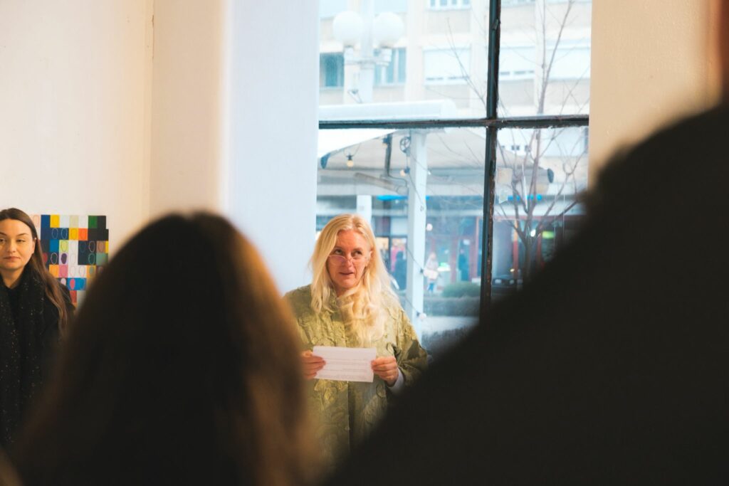 Cuvântul de deschidere, susținut de conf. univ. dr. Valentina Ștefănescu, a evidențiat importanța demersului artistic ca formă de reflecție asupra realității și ca mijloc de explorare a identității vizuale actuale. Discursul a subliniat forța dialogului dintre limbajele plastice diferite propuse de cei doi studenți masteranzi, precum și relevanța unei astfel de colaborări în contextul cultural prezent.