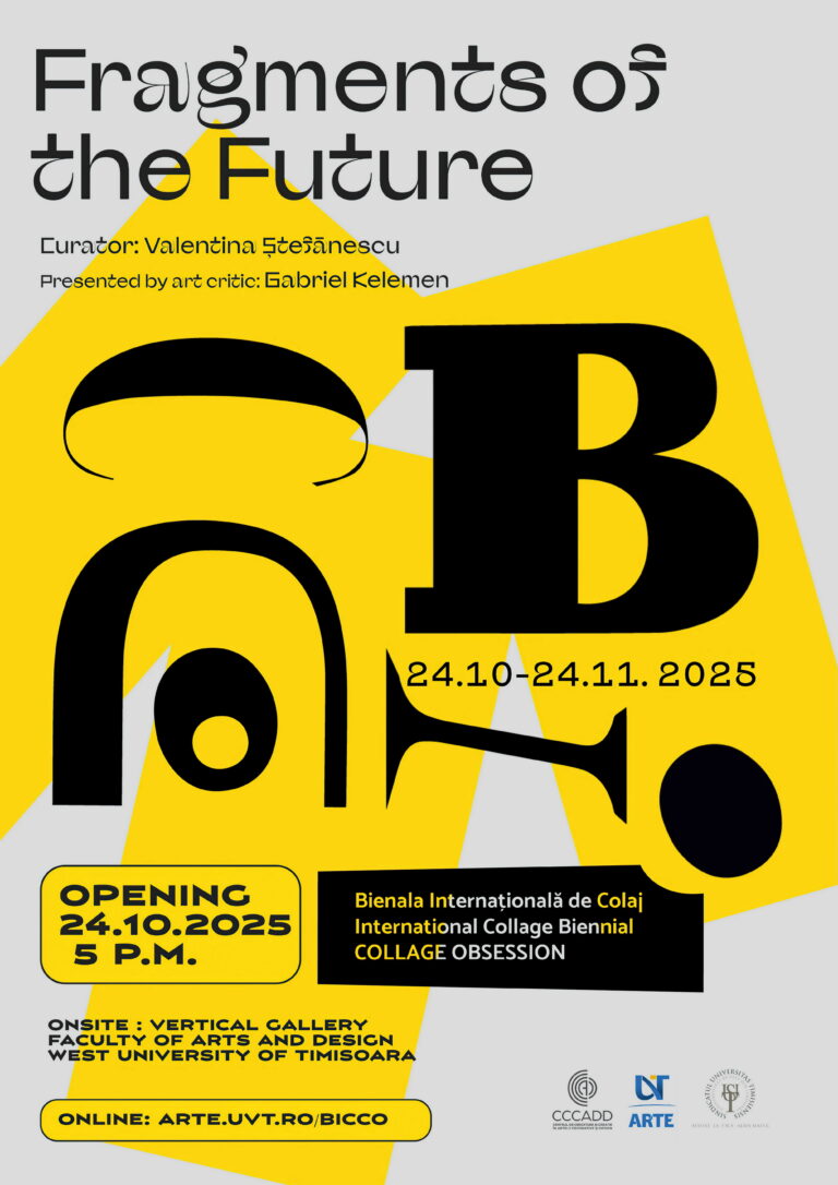 Cea de-a doua ediție a Bienalei Internaționale de Colaj – Collage Obsession 2025, organizată de Facultatea de Arte și Design din cadrul Universității de Vest din Timișoara, a fost lansată oficial la sfârșitul lunii octombrie și poate fi vizitată în prezent atât onsite, la Galeria Verticală, cât și online, pe platforma arte.uvt.ro/bicco.