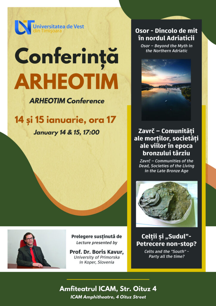 În zilele de 14 și 15 ianuarie, Amfiteatrul ICAM din cadrul Universității de Vest din Timișoara a găzduit, în cadrul seriei Conferințele ArheoTim, o serie de trei conferințe susținute de prof. dr. Boris Kavur, de la Universitatea Primorska (Slovenia), unul dintre cei mai importanți cercetători europeni în domeniul arheologiei preistorice. Prelegerile au abordat teme de […]