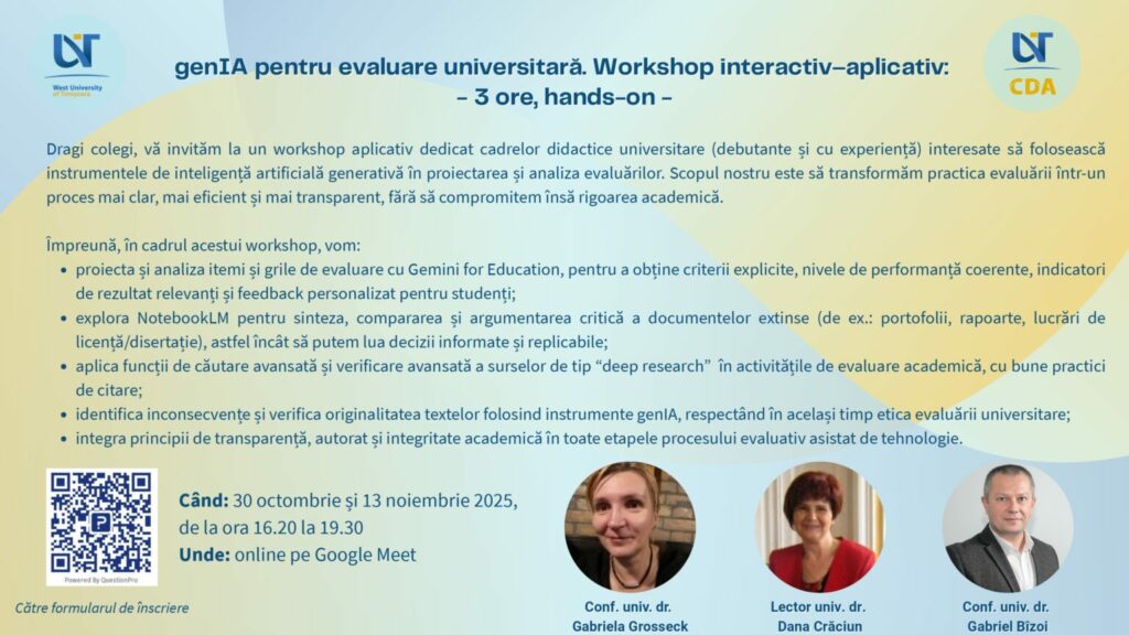 În lunile următoare, aceste workshopuri vor aborda teme-cheie pentru comunitatea academică UVT: