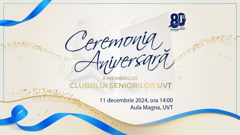 La UVT ne prețuim seniorii! De aceea, miercuri, 11 decembrie 2024, de la ora 14:00, în Aula Magna a Universității de Vest din Timișoara, ne-am bucurat împreună în cadrul Ceremoniei Aniversare a membrilor Clubului Seniorilor UVT.
