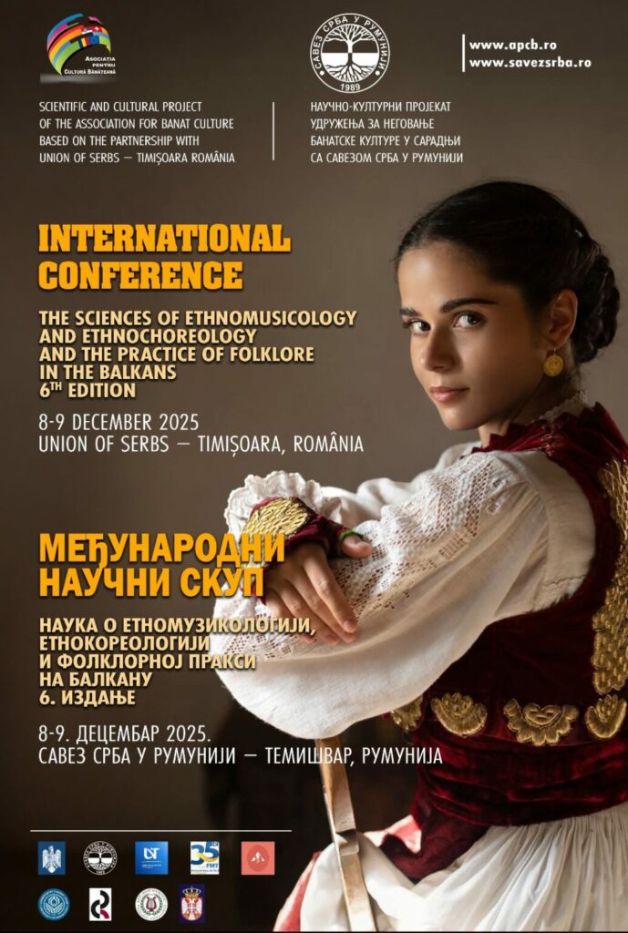 Asociația pentru Cultură Bănățeană, prin parteneriatul de înaltă ținută culturală și științifică cu Uniunea Sârbilor din România, a organizat în zilele de 8 și 9 decembrie 2025 cea de-a VI-a ediție a Conferinței Internaționale „The Science of Ethnomusicology and Ethnochoreology and the Practice of Folklore in the Balkans”. Evenimentul a reunit specialiști de prestigiu din domeniile etnomuzicologiei, etnocoreologiei, bizantinologiei, etnologiei și antropologiei.
