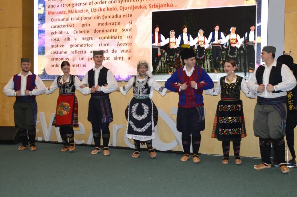 Membrii Ansamblului „Mladost” – coordonați de către coregraful Senadin Krstić, elevii Liceului „Dositei Obradović” – coordonați de către doamna profesoară Radoslava Glišović, studenții programului de Limba și literatura sârbă – coordonați de către doamna conf. univ. dr. Mața Andreici (cea care a orchestrat întregul program dedicat Serbiei) au alcătuit un program variat, dinamic, antrenant. Momentele artistice și intervențiile invitaților au oferit publicului o perspectivă autentică asupra tradițiilor, valorilor și expresiilor culturale sârbe, într-o atmosferă de deschidere și respect reciproc. În acest sens, noul lector de limba și cultura sârbă de la Universitatea de Vest din Timișoara, doamna Đurđina Kandić, a realizat ample prezentări ale tradițiilor și valorilor celebrate în această perioadă. Manifestarea a cunoscut o intensitate aparte și prin faptul că s-a desfășurat în perioada dintre Crăciun și Anul Nou pe rit vechi.
