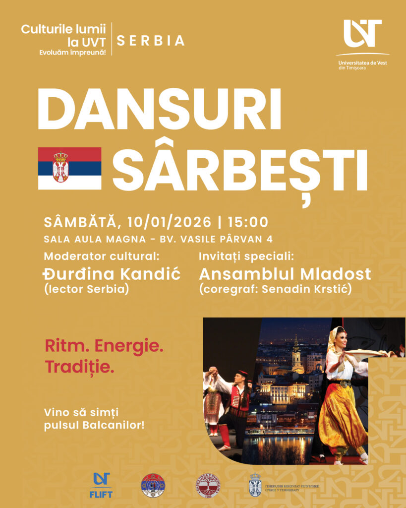 În perioada 10–12 ianuarie 2026, Universitatea de Vest din Timișoara a găzduit o nouă ediție a evenimentului Culturile lumii la UVT. Evoluăm împreună!, dedicată de această dată Serbiei, un demers menit să celebreze diversitatea culturală și să consolideze dialogul intercultural în spațiul academic timișorean.