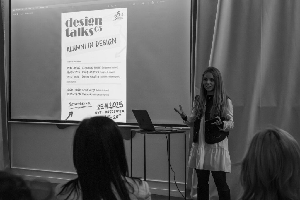 Pe data de25 noiembrie 2025, Facultatea de Artă și Design din cadrul Universității de Vest din Timișoara a transformat Galeria UVT ArtCenter într-un forum dinamic de inspirație și emoție, încheind cu succes evenimentul lunii noiembrie, DESIGN CONNECT, prin cea de-a V-a ediție a proiectului extracurricular DESIGN TALKS, desfășurat sub tematica Alumni in Design.