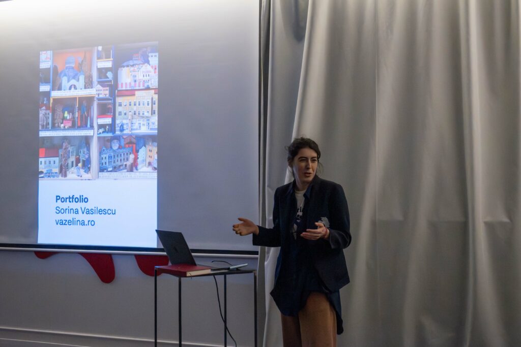 Cu un stil distinctiv și o prezență puternică, Sorina a oferit o privire onestă asupra vieții de ilustrator freelancer. A discutat despre negocierea proiectelor creative și despre echilibrul dintre viziunea artistică personală și cerințele comerciale. Lucrările ei, pline de expresivitate și umor, au servit drept inspirație pentru tinerii care aspiră la o carieră vizuală liber-profesionistă.