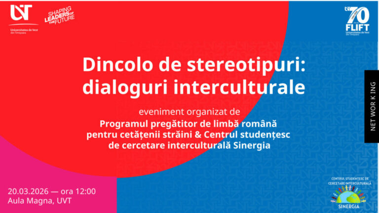 Universitatea de Vest din Timișoara(UVT), prin Facultatea de Litere, Istorie, Filosofie și Teologie, a organizat în data de 20 martie 2026, de la ora 12:00, în Aula Magna UVT, evenimentul „Dincolo de stereotipuri: dialoguri interculturale”.