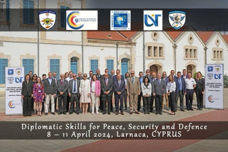 Cea de-a treia ediție a cursului „Diplomatic Skills for CSDP”, organizat în afara României, a avut loc în perioada 8 – 10 aprilie în Larnaca, Cipru. Cursul a fost organizat de Cyprus Academy for Security and Defence în cooperare cu Universitatea de Vest din Timișoara, alături de Ambasada României în Republica Cipru, sub egida Colegiului European de Securitate și Apărare (ESDC) al UE. La această ediție au participat 25 de specialiști din domeniul diplomației și al apărării din nouă state membre UE.