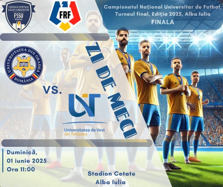 Echipa de fotbal a Universității de Vest din Timișoara (UVT) a câștigat medaliile de aur la Campionatul Național Universitar de Fotbal 2025, cu scorul de 3-1 în meciul final, desfășurat la Alba Iulia duminică, 1 iunie.