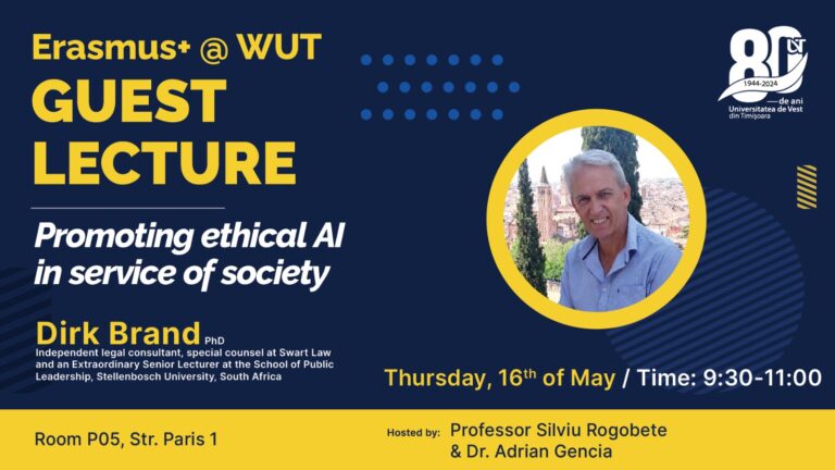 Evenimentele din cadrul seriei Erasmus+ @WUT Guest Lectures au continuat la Universitatea de Vest din Timișoara, de această dată cu o conferință pe tema echității sistemelor AI și a impactului lor asupra societății.