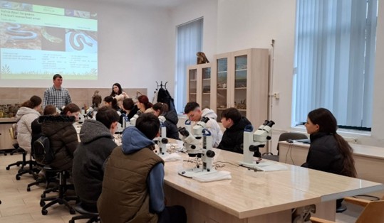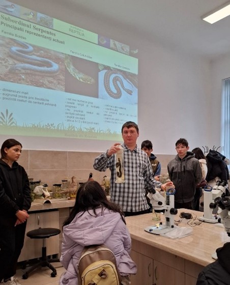 Chiar dacă iarna își face simțită prezența prin temperaturi scăzute, natura rămâne la fel de fascinantă și plină de mistere. Astfel, am avut plăcerea de a primi la facultatea noastră elevii clasei a VIII-a de la Școala Gimnazială Mașloc, într-o vizită specială dedicată explorării lumii vii. Întâlnirea a fost o oportunitate excelentă de a aduce știința mai aproape de tineri și de a stimula curiozitatea pentru biologie.