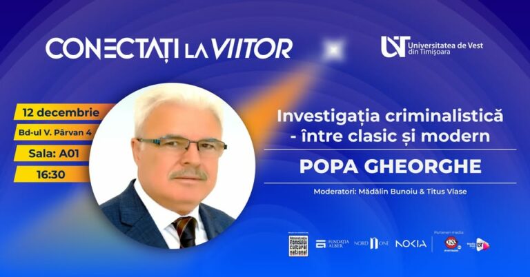 Pe 12 decembrie, la ora 16:30, vă invităm la un nou eveniment din seria „Conectați la viitor”, în cadrul căruia vom explora o temă captivantă: investigația criminalistică.