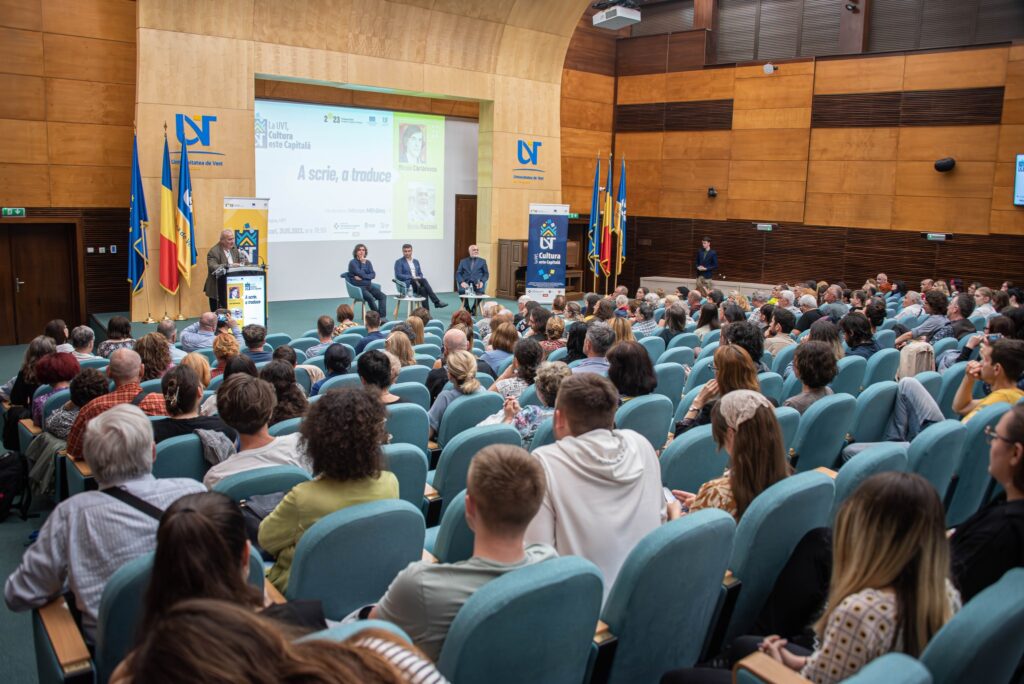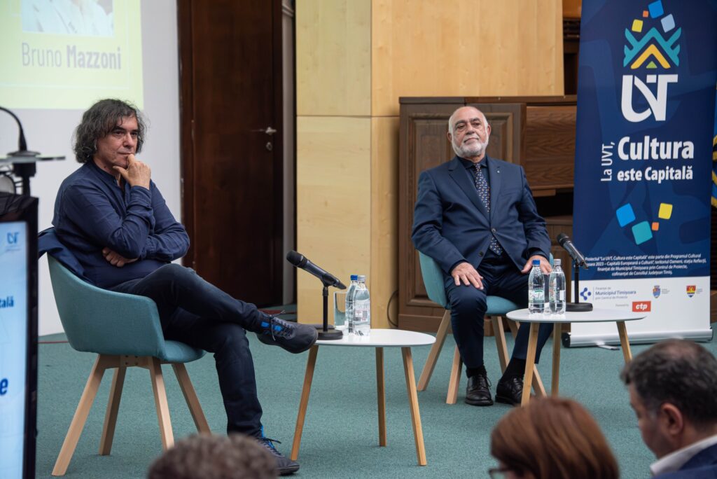 Conferința „A scrie, a traduce”, susținută de Mircea Cărtărescu și Bruno Mazzoni, a avut loc în Aula Magna a Universității de Vest din Timișoara pe data de 31 mai, începând cu ora 18:00. A fost o seară dedicată pasiunii pentru literatură și traducere, care a oferit publicului oportunitatea unică de a interacționa cu doi oameni extraordinari.