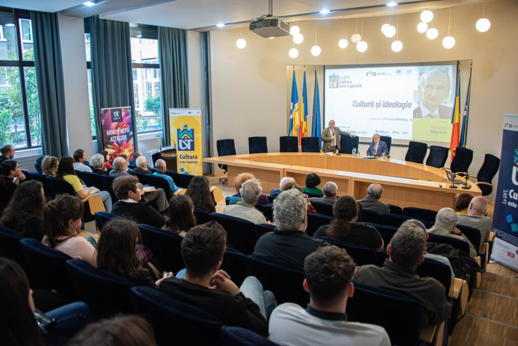 Reputatul profesor universitar, critic literar și eseist, Mircea Martin a susținut conferința „Cultură și ideologie”, în data de 10 mai, la ora 18:00, în Amfiteatrul A01 al Universității de Vest din Timișoara.