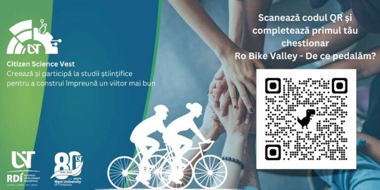 În cadrul platformei CitizenScienceVest, primul chestionar disponibil a fost dedicat investigării percepțiilor, motivațiilor și barierelor legate de mobilitatea sustenabilă, în special prin ciclism. Acest demers de cercetare aplicativă este rezultatul colaborării dintre Institutul de Cercetări Avansate de Mediu, Decathlon și comunitatea Ro Bike Valley. Chestionarul își propune să colecteze date esențiale care vor fi utilizate pentru a înțelege mai bine factorii ce influențează adoptarea ciclismului ca mod de transport sustenabil în comunitatea noastră.
