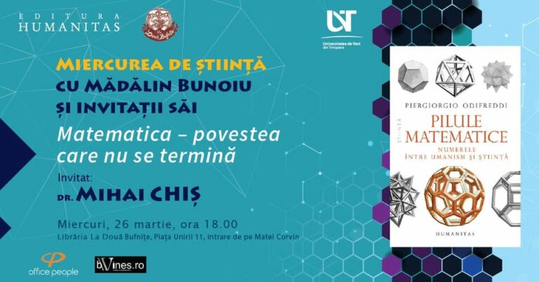 Cartea de la care a pornit discuția a fost „Pilule matematice. Numerele între umanism și știință”, de Piergiorgio Odifreddi, Editura Humanitas, 2024. Traducere de Liviu Ornea.