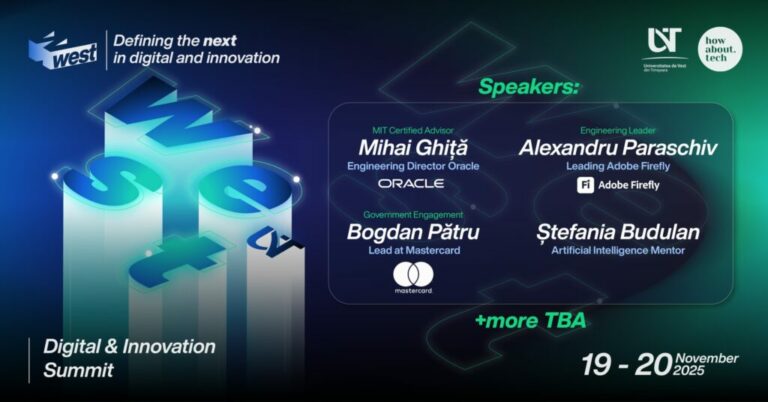 Universitatea de Vest din Timișoara (UVT) devine epicentrul digitalizării prin „West Digital and Innovation Summit” 2025 – evenimentul dedicat viitorului în AI, inovației și tehnologiei. Tot ceea ce știm despre tehnologie este pe cale să se schimbe, iar Universitatea de Vest din Timișoara și „How About Tech” ne oferă prilejul de a fi parte din dialogul care va defini viitorul digital.