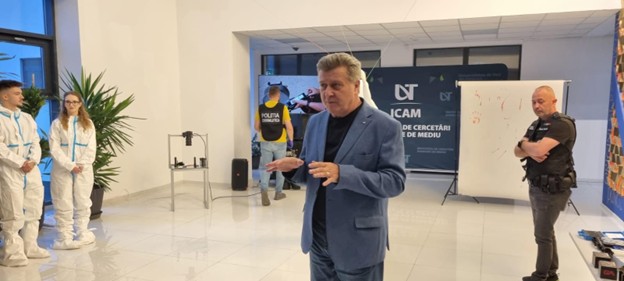 Reprezentanți ai Serviciului Criminalistic din cadrul IPJ Timiș și INSEMEX Petroșani au oferit demonstrații cu echipamente de specialitate și au explicat modul în care metodele științifice și aparatura utilizată permit investigarea detaliată a evenimentelor.