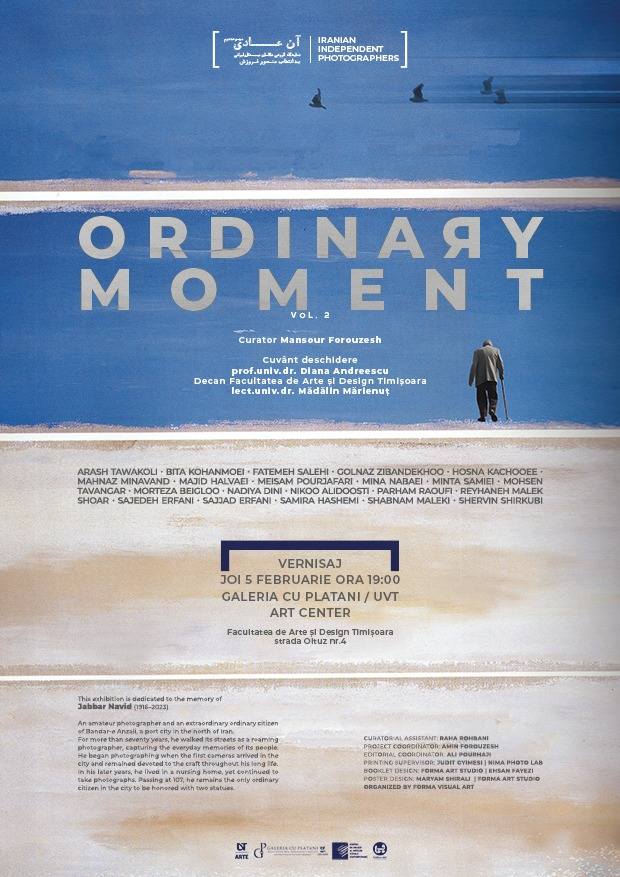 Avem bucuria de a vă invita joi, 5 februarie 2026, începând cu ora 19:00, la Galeria cu Platani, Facultatea de de Arte și Design din cadrul Universității de Vest din Timișoara (UVT ArtCenter, str. Oituz 4), pentru vernisajul expoziției de fotografie „Ordinary Moment”. Evenimentul aduce la Timișoara lucrările a 21 de fotografi iranieni, oferind publicului o incursiune rară și extrem de personală în realitatea de zi cu zi a Iranului contemporan.