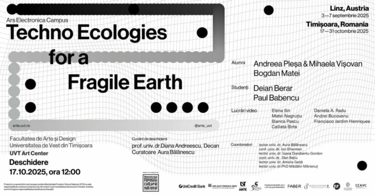 Proiectul „Techno-Ecologies for a Fragile Earth”, care a fost organizat de Facultatea de Arte și Design a Universității de Vest din Timișoara în cadrul programului Ars Electronica Campus Linz 2025, a fost prezentat la Art Center Timișoara, în perioada 17–31 octombrie 2025.
