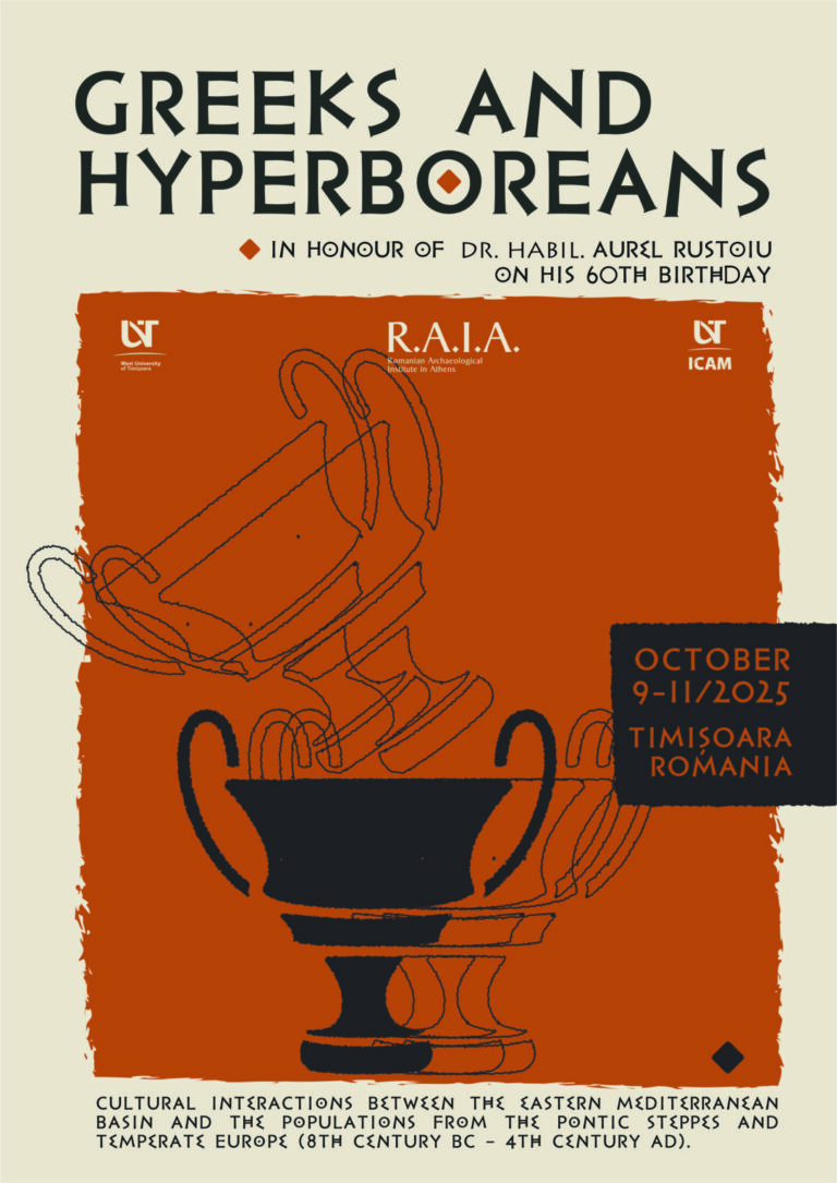 Cea de-a doua Conferință Internațională RAIA (Romanian Archaeological Institute in Athens), organizată de Universitatea de Vest din Timișoara(UVT), a transformat Aula ICAM – UVT într-un veritabil forum al arheologiei europene, reunind cercetători din zece țări. Desfășurată în perioada 9–11 octombrie 2025, ediția din acest an – dedicată dr. habil. Aurel Rustoiu, la împlinirea vârstei de 60 de ani – a avut ca temă „Grecii și Hiperboreenii: Interacțiuni culturale între bazinul estic al Mediteranei și populațiile din stepele pontice și Europa temperată (secolele VIII î.Hr. – IV d.Hr.)”.
